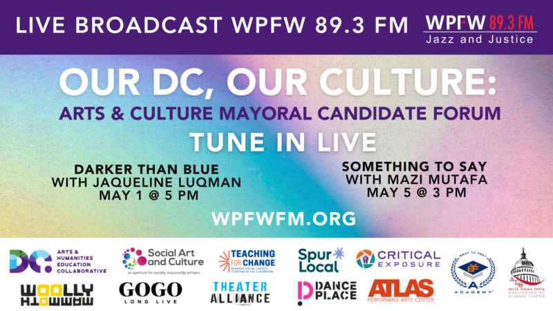 WPFWRegister here to get reminders TUNE IN | Our DC, Our Culture: Arts & Culture Mayoral Candidate Forum May 1 at 5 - 6 PM and on May 5 from 3-5 pm Tune in at WPFW 89.3 FM Curious about what your mayoral candidate thinks about DC’s art and culture? Then you are invited to […]